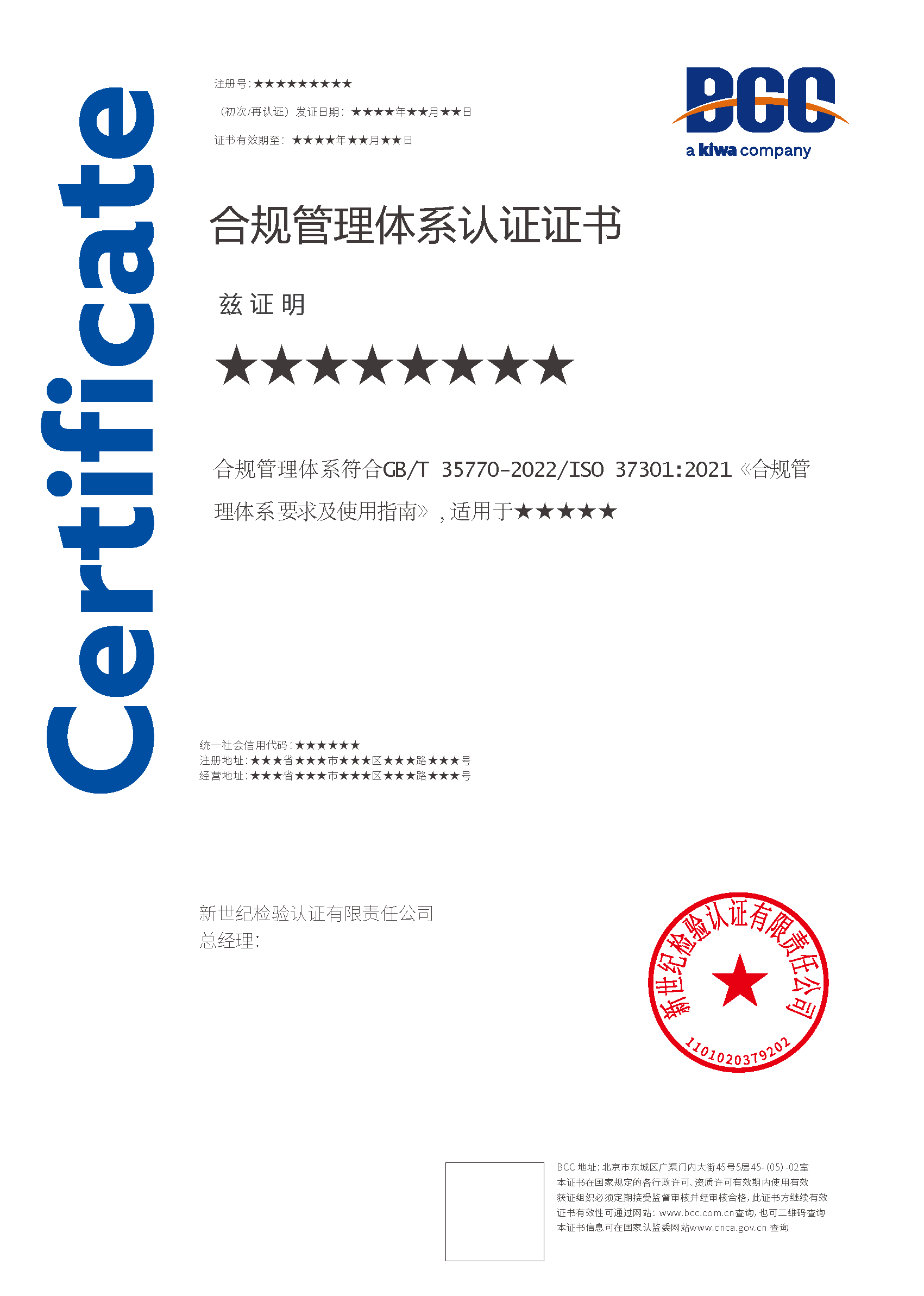 本頁涉及的認(rèn)證服務(wù)中均有對應(yīng)的《認(rèn)證實(shí)施規(guī)則》,BCC擁有其最終解釋權(quán)。任何組織及個人未經(jīng)BCC許可,不得以任何形式全部或部分使用(法律要求除外)認(rèn)證相關(guān)信息。如需獲取相關(guān)實(shí)施規(guī)則請用以下方式聯(lián)系獲?。弘娫挘?10-58579316 郵箱:fwjs@kiwa.cn