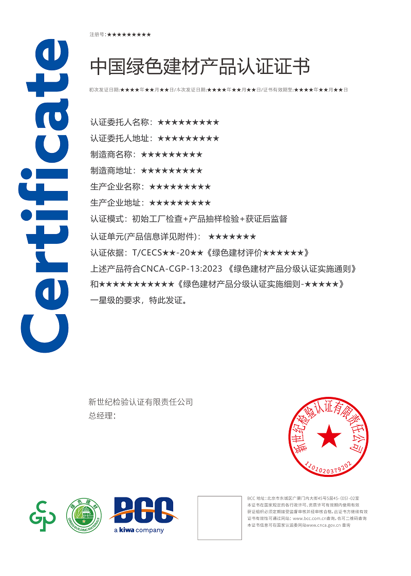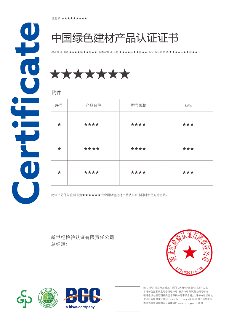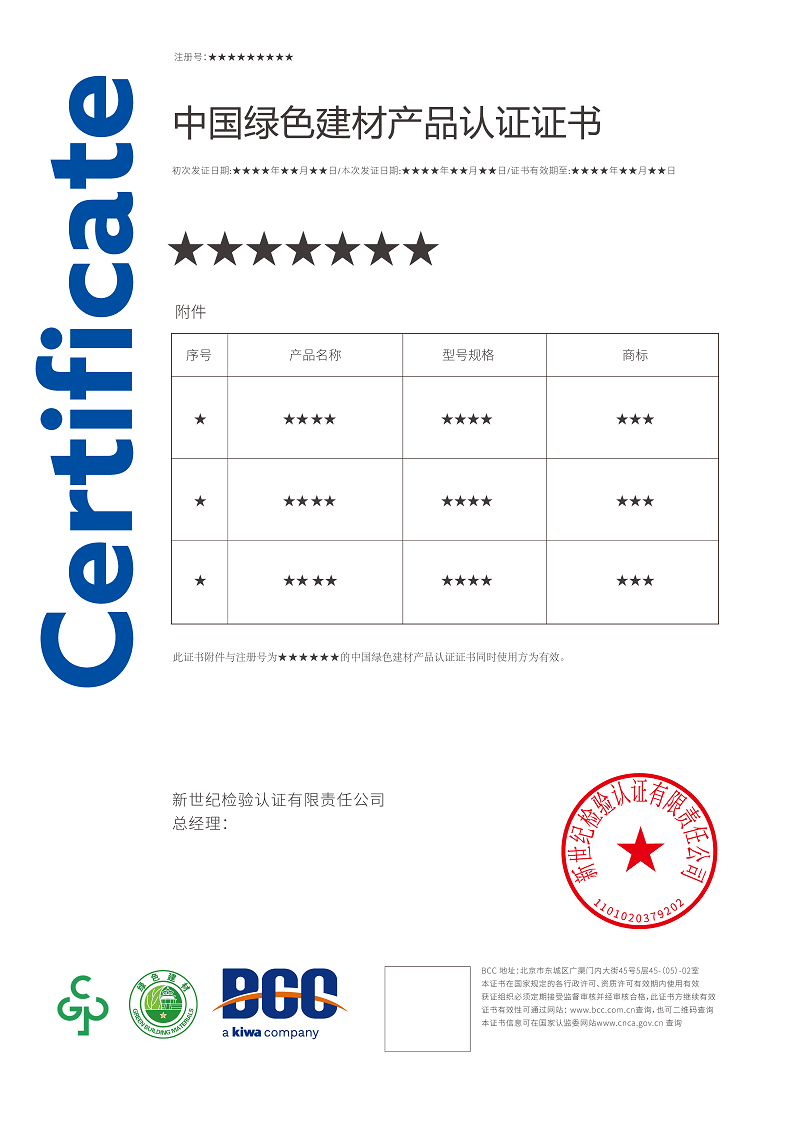 本頁(yè)涉及的認(rèn)證服務(wù)中均有對(duì)應(yīng)的《認(rèn)證實(shí)施規(guī)則》,BCC擁有其最終解釋權(quán)。任何組織及個(gè)人未經(jīng)BCC許可,不得以任何形式全部或部分使用(法律要求除外)認(rèn)證相關(guān)信息。如需獲取相關(guān)實(shí)施規(guī)則請(qǐng)用以下方式聯(lián)系獲取:電話:010-58579316 郵箱:fwjs@kiwa.cn