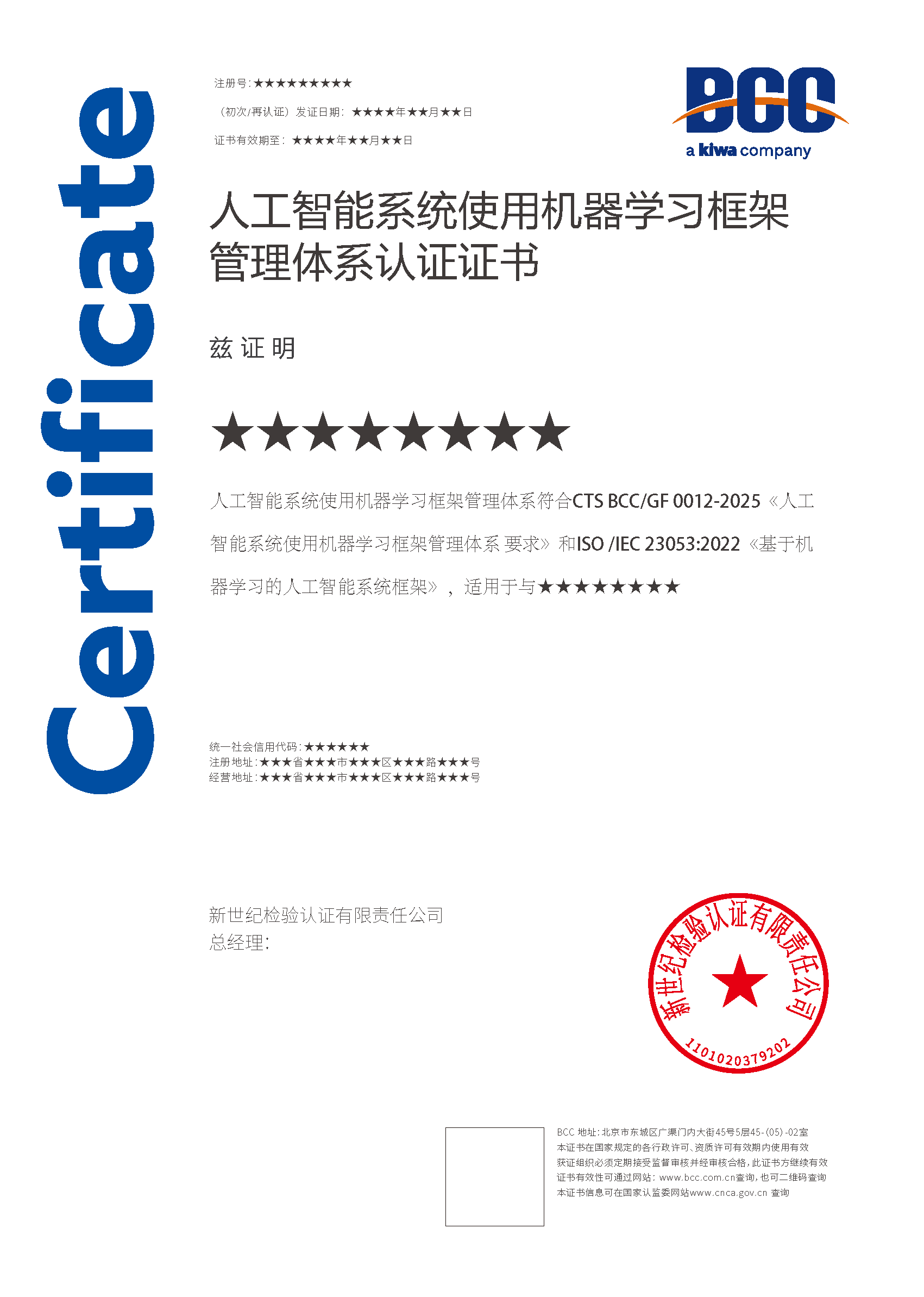 人工智能系統(tǒng)使用機器學(xué)習(xí)框架管理體系認(rèn)證適用于所有類型和規(guī)模的組織,包括正在實施或使用人工智能系統(tǒng)的公私企業(yè)、政府機構(gòu)以及非營利性組織。