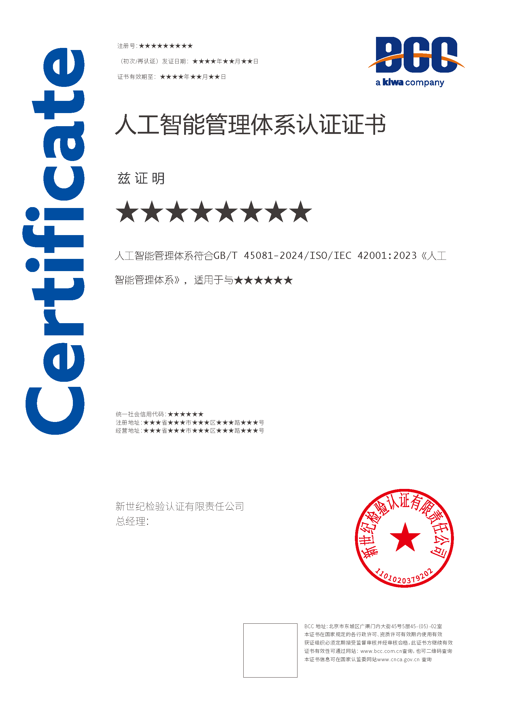 本頁涉及的認證服務(wù)中均有對應的《認證實施規(guī)則》,BCC擁有其最終解釋權(quán)。任何組織及個人未經(jīng)BCC許可,不得以任何形式全部或部分使用(法律要求除外)認證相關(guān)信息。如需獲取相關(guān)實施規(guī)則請用以下方式聯(lián)系獲?。弘娫挘?10-58579316 郵箱:fwjs@kiwa.cn