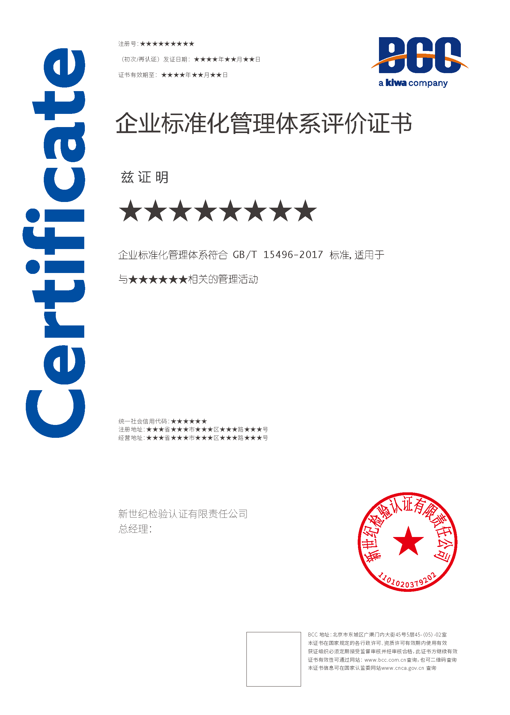 本頁(yè)涉及的認(rèn)證服務(wù)中均有對(duì)應(yīng)的《認(rèn)證實(shí)施規(guī)則》,BCC擁有其最終解釋權(quán)。任何組織及個(gè)人未經(jīng)BCC許可,不得以任何形式全部或部分使用(法律要求除外)認(rèn)證相關(guān)信息。如需獲取相關(guān)實(shí)施規(guī)則請(qǐng)用以下方式聯(lián)系獲?。弘娫挘?10-58579316 郵箱:fwjs@kiwa.cn