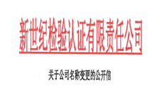 根據(jù)公司戰(zhàn)略發(fā)展的需要,經(jīng)市場(chǎng)監(jiān)督管理局核準(zhǔn),自2019年10月22日起,公司名稱(chēng)由“新世紀(jì)檢驗(yàn)認(rèn)證股份有限公司”正式變更為“新世紀(jì)檢驗(yàn)認(rèn)證有限責(zé)任公司”。閱讀更多 -