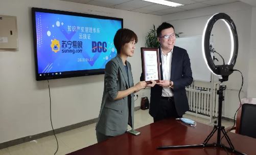 “云頒證”儀式,BCC為蘇寧易購(gòu)頒發(fā)知識(shí)產(chǎn)權(quán)管理體系認(rèn)證證書(shū)!