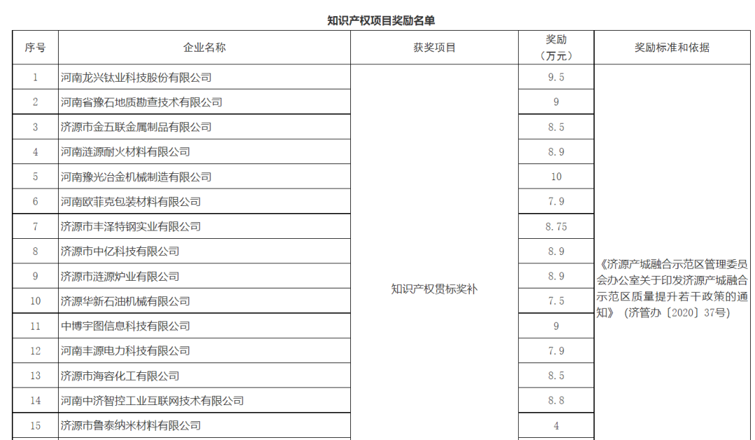 濟(jì)源產(chǎn)城融合示范區(qū)管理委員會(huì)辦公室關(guān)于對(duì)2021年度質(zhì)量提升工作進(jìn)行獎(jiǎng)勵(lì)補(bǔ)助。